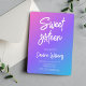 Celebra su hito en un estilo moderno y audaz con esta invitación Sweet 16 con gradiente de neón. Con una vibrante mezcla de tonos púrpura, rosa y azul, este diseño es perfecto para una celebración de cumpleaños trendy e inolvidable.