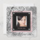Invitación de cumpleaños de dulces 16 años con foto de damasco rosa plateado y negro. Personalice esta hermosa invitación de cumpleaños rosa y gris plateado simplemente agregando los detalles de su evento, estilo de fuente, tamaño y color de fuente, y redacción. Tenga en cuenta que todos los adornos para pasteles, tarjetas y diseños de invitaciones que encontrará en Zazzle son gráficos impresos sin joyas reales, lazos, relieves, estampados o piezas o partes agregadas.