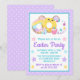 invitación de pascuadonas de conejopastelitos pastelfiesta de primaveradiseño festivoadorno de fiestagolosinasestilo caricaturafondo moradofavor de fiesta
