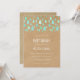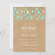 Cute gotas de lluvia verdes menta caen hacia tus detalles personalizados en un fondo rústico kraft boho, en esta linda invitación de baby shower neutral para género, sprinkle o shower de parejas. El reverso presenta una lluvia adicional de gotas de lluvia, agregando un toque extra a tu evento especial.