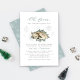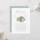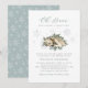 Celebra a la futura mamá con esta encantadora invitación de fiesta de bebé de invierno "Oh Deer". Un cervatillo durmiendo pintado con acuarela y rodeado de vegetación y nieve está enmarcado por delicadas flores de nieve en tonos suaves de azul-verde, salvia y pizarra. El encabezado juguetón "Oh Deer, el bebé está casi aquí" añade un toque caprichoso al elegante diseño de invierno. La parte trasera presenta un patrón de copos de nieve coordinados. Todo el texto es totalmente personalizable.