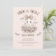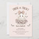 Invite a sus pequeños gorriones y duendes de la manera más dulce posible con esta adorable invitación rosada de la fiesta de Halloween que incluye un chica fantasma vestido a la friolera con un arco. Perfecto para fiestas de disfraces infantiles, trineos de Halloween o celebraciones en las aulas, esta invitación le da un toque de encanto kawaii y vibraciones en tonos pastel a sus planes de Halloween. En la parte delantera, de un suave fondo rosa con un fantasma de gafas con un vestido frilly y una proa de un punto de polka, se ha optado por un estilo Leopard de tendencia rosa pastel. Personalizable completo con los detalles de su fiesta. Ideal para fiestas de cumpleaños, noches de truco o de placer, o reuniones de esculturas de calabaza. Ya sea que planee un fabuloso escaparate, un fiesta de disfraces, o una pizza y un cangrejo de caramelos, esta invitación marca la pauta para un momento divertido, festivo y algo espeluznante. La opción de descarga digital está disponible.