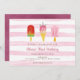 Celebra un cumpleaños de verano con esta dulce invitación con bonito y deliciosos helados y rayas rosas. Agregue los detalles de la fiesta de cumpleaños de su hija a esta plantilla de invitación de cumpleaños fácil de personalizar. Perfecto para un fiesta de piscina o quizás un fiesta en la playa.