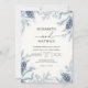 Un diseño de invierno sereno se despliega con delicados elementos botánicos azules polvorientos enmarcados en el borde. Las pineconas y el follaje esmerilado evocan una estética natural tranquila. Este diseño ofrece un ambiente elegante y refinado para una reunión de invierno.