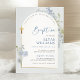 Invitación Duste Blue Delphinium Floral Arched Boy Baptism