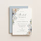 Elegante color de agua polvoriento azul follaje botánico y marco floral jardín, invitación a la ducha de novia. Elegante plantilla de diseño de tipografía gris con respaldo de color azul coordinado.