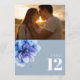 Invitación Duste Blue Watercolor Floral Photo Table Number