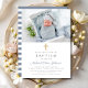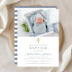 Texto personalizado Tiras Azules Polvorientas Cruzando La Invitación Del Baptismo Del Niño.