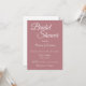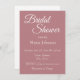 Estilo sencillo, invitación a la ducha de novias que cuenta con un fondo de color rosa moderno y polvoriento, junto con el nombre de la futura novia y la hora y ubicación del evento fiesta, contacto, etc., impreso con letras blancas y estilizadas. Personalice su invitación reemplazando el texto con su propia información sobre la ducha de novia. Seleccione el estilo y la cantidad del papel de invitación.