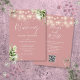 Esta elegante y polvorienta invitación a la boda rosa, con luces de cuerda de bonito y vegetación floral, puede ser personalizada con su información en tipografía de moda con los detalles de su sitio web boda y su código QR al revés. Diseñado por Thisisnotme©