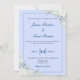 La invitación a la boda de Twin Spirit Designs tiene un tranquilo fondo azul polvoriento con rosas blancas. Para conmemorar esta memorable ocasión, invite a su familia y amigos.