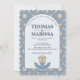 Invitación Dusty Blue Art Nouveau Wedding Invite with QR Code