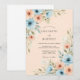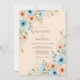 This design features a soft and romantic palette of light blue and pale apricot watercolor blossoms. Delicate wildflowers and airy foliage create a whimsical, ethereal atmosphere. The artwork displays a serene composition of botanical elements in sage green and pastel tones.