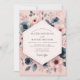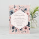 This elegant design features a romantic composition of painterly botanicals. Soft blush pink roses and delicate buds are beautifully contrasted by striking dusty blue anemones. Sprays of muted foliage are scattered throughout the arrangement, creating a dreamy and artistic atmosphere for your special day.