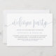 Invite a la familia y amigos con esta invitación de bienvenida de personalizable. Presenta caligrafía caprichosa y tipografía clásica. Personalice agregando nombres, fecha, dirección y otros detalles. Esta polvorienta invitación a la fiesta de bienvenida, en blanco y azul, es perfecta para cualquier época del año y para cualquier tema. Esta invitación de bienvenida a la fiesta es perfecta para bodas, fiestas de limpieza, celebraciones de regreso de bienvenida, nuevos fiestas de trabajo o cualquier evento en el que quieras celebrar un nuevo comienzo.