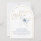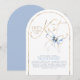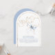 This “She’s Tying the Knot” bridal shower invitation captures romance with a playful twist. A flowing gold calligraphy headline glows like fine jewelry against a crisp white backdrop, instantly drawing the eye and setting a celebratory tone. Perched delicately above the lettering, a hand-painted dusty blue watercolor bow feels like the finishing ribbon on a beautifully wrapped gift — charming, unexpected, and undeniably chic. The arch-shaped cut adds an extra layer of distinction, giving the invitation a sculptural, modern silhouette that feels as special as the moment it announces.