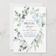 Dusty Blue Floral Rosas y Eucalyptus Botanical Greenery Water Spring o Summer Boda Bridal Shower Invitation - incluye hermosa y elegante tipografía de guiones con flores botánicas tropicales modernas y vegetación para la celebración especial del Día de la Boda.