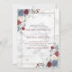 Crea la invitación perfecta a la boda con esta tradicional marsala tradicional de color azul polvoriento, burdeos y un diseño floral de color rosa floral y verde acuarela, con un fondo de mármol de imitación de carrera, tipografía de escritura con letras a mano y polvo de oro falso. Copyright Elegant Invita, todos los derechos reservados.