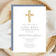 Dusty Blue Cross Religious Boy Invitación De Primera Comunión.