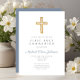 Invitación Dusty Blue Cross Religion Boy First Communiation