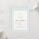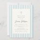 Una invitación lujosa y elegante al bautismo para los niños con rayas azules y blancas y una sencilla cruz azul sobre un fondo de marfil. Para obtener una textura premium, elija el tipo de papel "Laid".