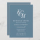 Dusty Blue Elegant Classic Monograma Boda Reensayar Tarjeta de Invitación a la Cena. Celebra tu día especial con esta elegante y hermosa tarjeta de invitación a la boda para embellecer tu ocasión especial. Todos los textos están preorganizados para que puedas personalizarlos fácil y rápidamente con tus propios detalles.