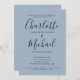 Con nombres de estilo característico, esta elegante y moderna y sencilla invitación a la fiesta de compromiso puede ser personalizada con su información en letras de moda sobre un polvoriento fondo azul. Diseñado por Thisisnotme©