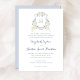 Invitación Dusty Blue Floral Greenery Monogram Crest Wedding