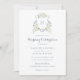 Invitación Dusty Blue Floral Greenery Monogram Crest Wedding