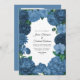Invitación Dusty Blue Floral Photo and QR Code Wedding