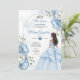 Invitación Dusty Blue Floral XV Birthday Invite with Crown