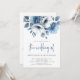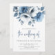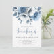 Invitación Dusty Blue Florals Script QR Code Wedding