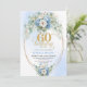 Invitación Dusty blue flowers white peony gold 60th birthday