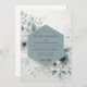 This design evokes a serene winter wonderland with soft, ethereal blue and gray floral elements and frosted foliage. Delicate blooms and subtle botanical details create a dreamy, romantic atmosphere perfect for a cool-toned celebration.