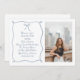 Dusty Blue Hand Drawn Bow Photo Graduation Party Invitación Horizontal.