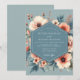 Experience a romantic and artistic affair with this elegant design. A stunning arrangement of painted anemones and poppies in soft peach, coral, and cream hues beautifully contrasts with the serene dusty blue background. This vintage-inspired botanical illustration sets a sophisticated and dreamy tone for your special day.