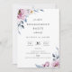 Elegante mauve, blanco y polvoriento color azul acuático floral botánica y follaje, ensayo boda invitación a cenar. La tarjeta presenta una plantilla moderna de diseño de tipografía y un respaldo polvoriento de color azul.