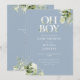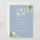Invitación Dusty Blue Oh Boy Greenery Código QR Baby Shower