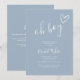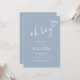 Una invitación moderna y minimalista para baby shower todo en uno que presenta un corazón dibujado a mano adorable, código QR del registro y detalles del evento con tipografía elegante sobre fondo dusty blue. Diseñado por Thisisnotme©