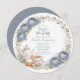 Elegant bridal shower design featuring a dusty blue palette tea party theme with a circular floral arrangement, teacup, teapot and dessert accents. Perfect for romantic afternoon tea celebrations, garden bridal showers and sophisticated bride to be gatherings. A soft and timeless choice for a feminine tea party event.
