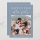 Elegante y polvoriento elopement azul o boda privado invitación y recepción invitación que incluye tu foto del día de la boda y "Feliz eterno después del Fiesta" en una mezcla de tipografía blanca simple y un guión blanco de moda con toques. Añade tus nombres y fecha de boda. En el reverso, introduzca la dirección URL de su sitio web boda para crear un código QR para que sus invitados busquen todos los detalles y para RSVP en línea, personalice su invitación matrimonial e invitación a la recepción y agregue sus nombres en un guión tipo firma.