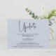 Si has tenido que hacer una pausa inesperada en la planificación de tu gran cita, aquí hay una opción simple pero distintiva. En este artículo, el moderno tipo de letra de escritura a mano se utilizó para crear un gráfico simple que representa la palabra "Actualizar". Utilice los campos de plantilla para añadir sus datos personales y hacer de este diseño moderno su propio. El fondo puede cambiarse a cualquier color que prefiera. Todas las capas se agregaron por separado y se dejaron sin bloquear para ofrecerle la mayor cantidad de control de diseño. // 130 //