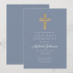 Invitación Dusty Blue Religious Cross Boy First Communion