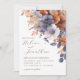 Invitación Dusty Blue Rust Watercolor Floral Elegante Boda