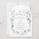 This romantic wildflower wedding invitation features soft, hand-painted watercolor florals arranged in an airy meadow wreath design. Delicate dusty blue blooms and flowing greenery frame your details for a timeless, garden-inspired look that’s perfect for spring and summer weddings.