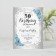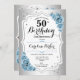 Invitación Dusty Blue Silver Photo Elegant 50 cumpleaños