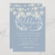 Una polvorienta invitación a la boda azul con luces de cuerdas de bonito y una delicada guirnalda floral rústica de hoja botánica con una tipografía de escritura elegante. Personaliza tu información especial sobre el día de tu boda. Diseñado por Thisisnotme©