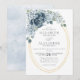 Un delicado marco falso dorado de oval está decorado con un ramo de acuarela, en esta elegante y polvorienta invitación a una boda floral azul. La parte posterior tiene una textura de color azul polvoriento. Encuentra productos coincidentes en la colección, o envíame un mensaje a través de Zazzle Chat para obtener más productos o ajustes de diseño que coincidan.