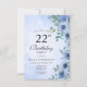 Invitación Dusty Blue Watercolor Floral Moda 22 cumpleaños