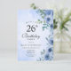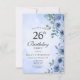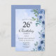 Invitación Dusty Blue Watercolor Floral Moda 26 cumpleaños